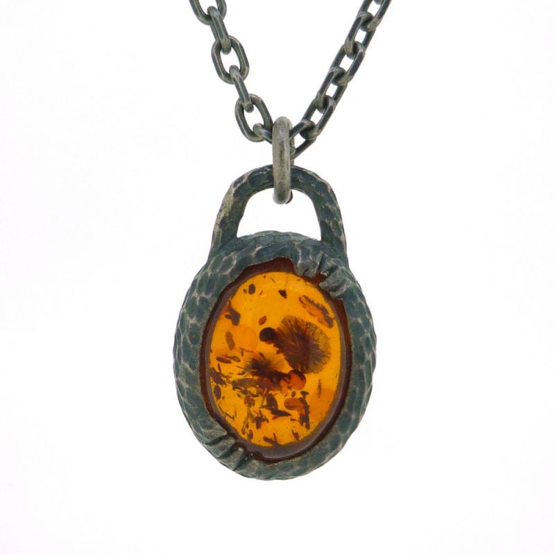 琥珀で大地の力強さを表現したシルバーネックレス「グレートグラウンドペンダント」