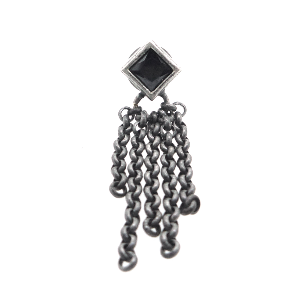 揺れるチェーンのお洒落なシルバーピアス「スクエアストーン&チェーン」 [ARKP-0004BKCZAQS]